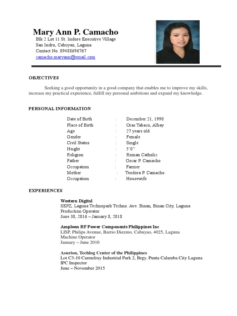 10 tips for writing great resumes tip #1: One page resume template word free download. Counsel, assess and administer aptitude tests on clients. Pick a 11 or 12pt resume font and stick to it. Sample resume (philippines) to obtain a challenging position appropriate to my field of interest in an environment suited for my qualifications so that i can fully utilize my capabilities as well as my knowledge and expertise.